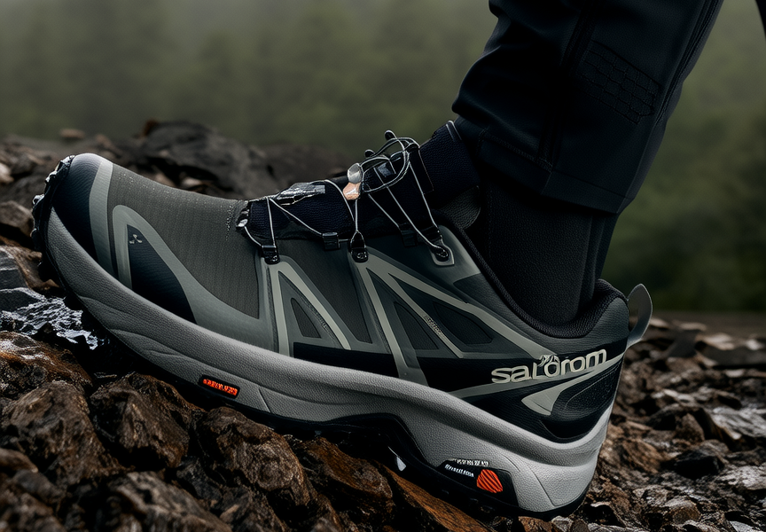 Contagrip®: As solas Salomon com tecnologia Contagrip® oferecem tração excepcional em todas as superfícies, desde pedras escorregadias até trilhas lamacentas. A composição exclusiva de borracha garante durabilidade e aderência superior, mesmo em condições úmidas ou escorregadias.